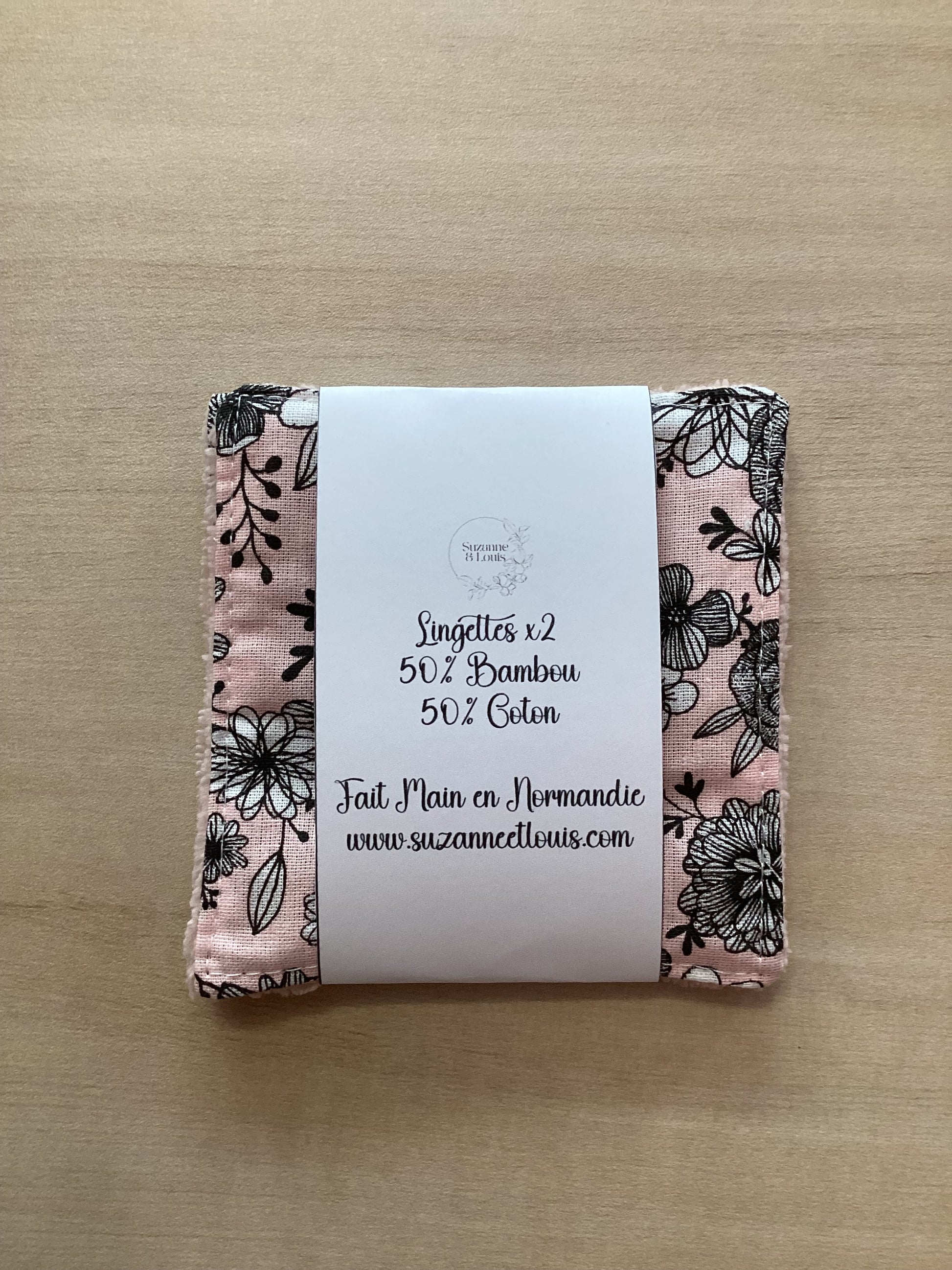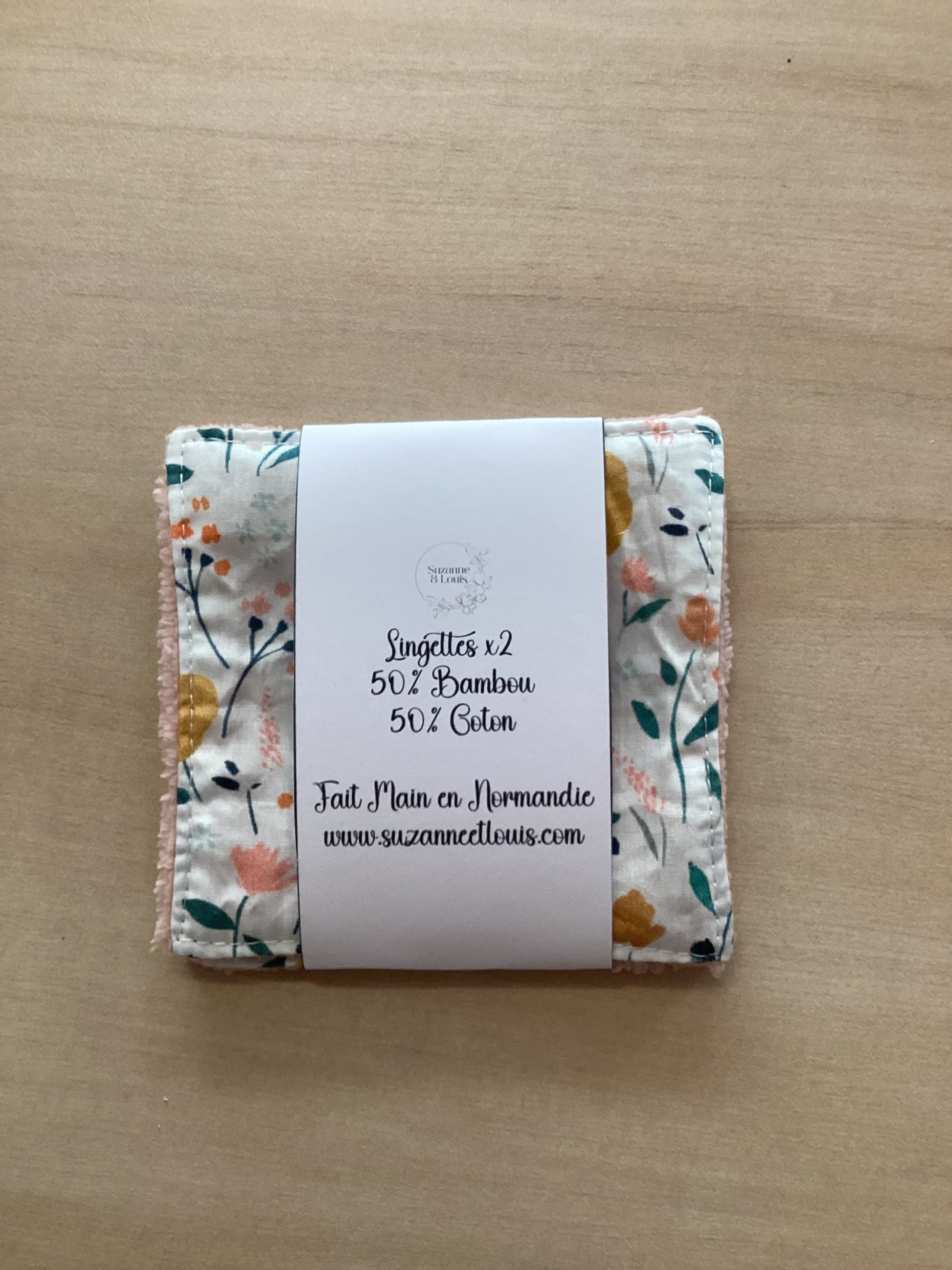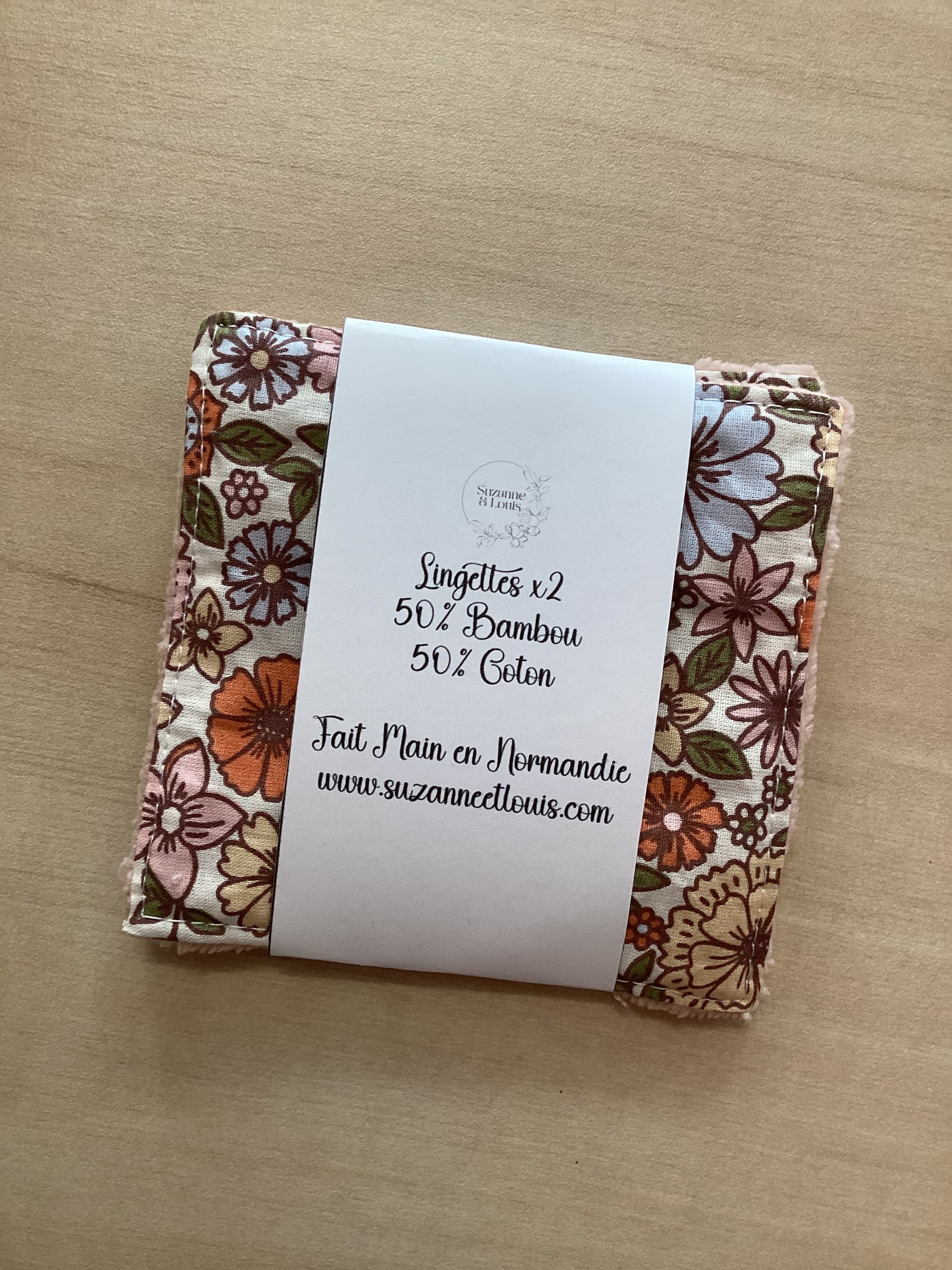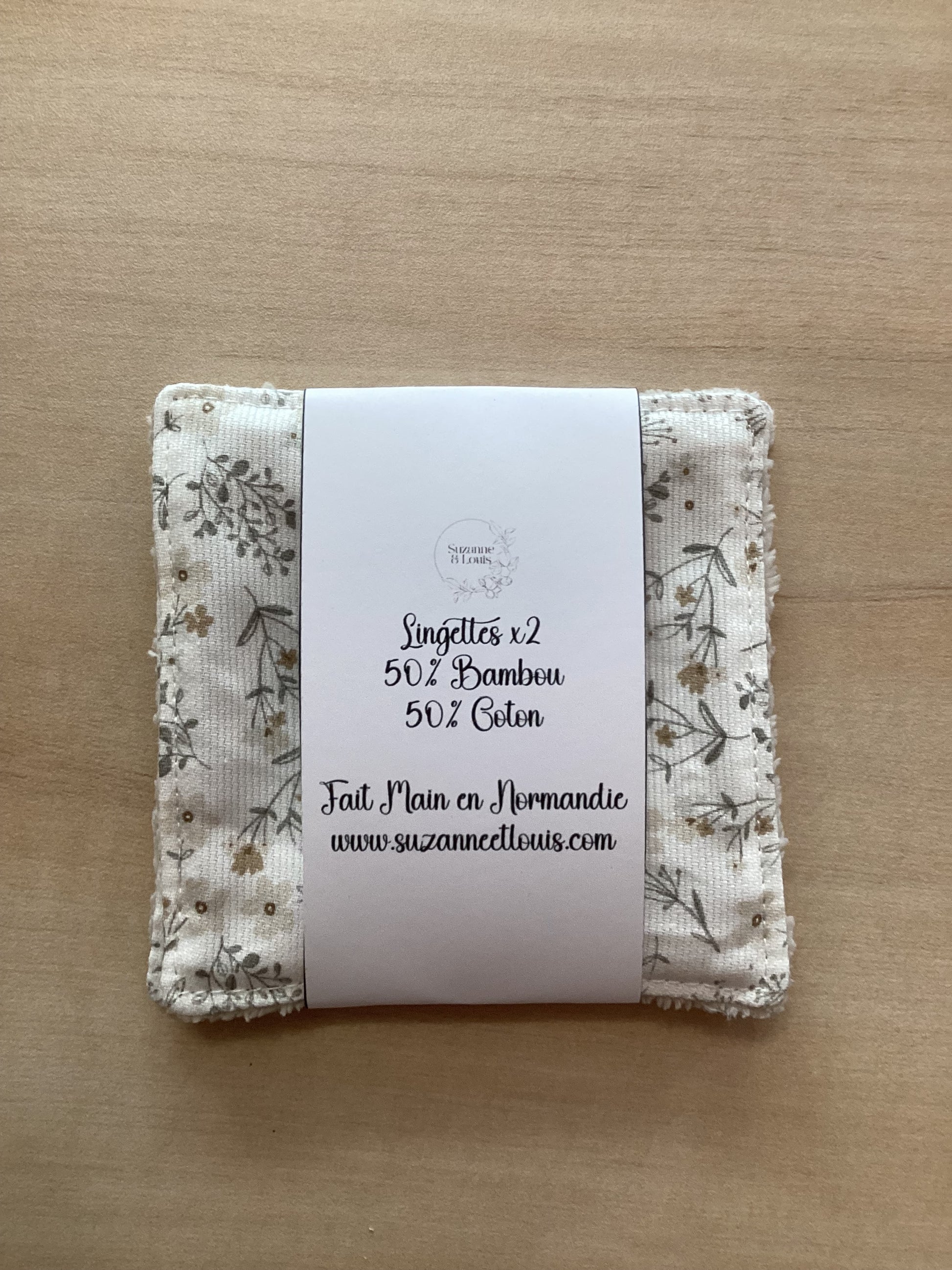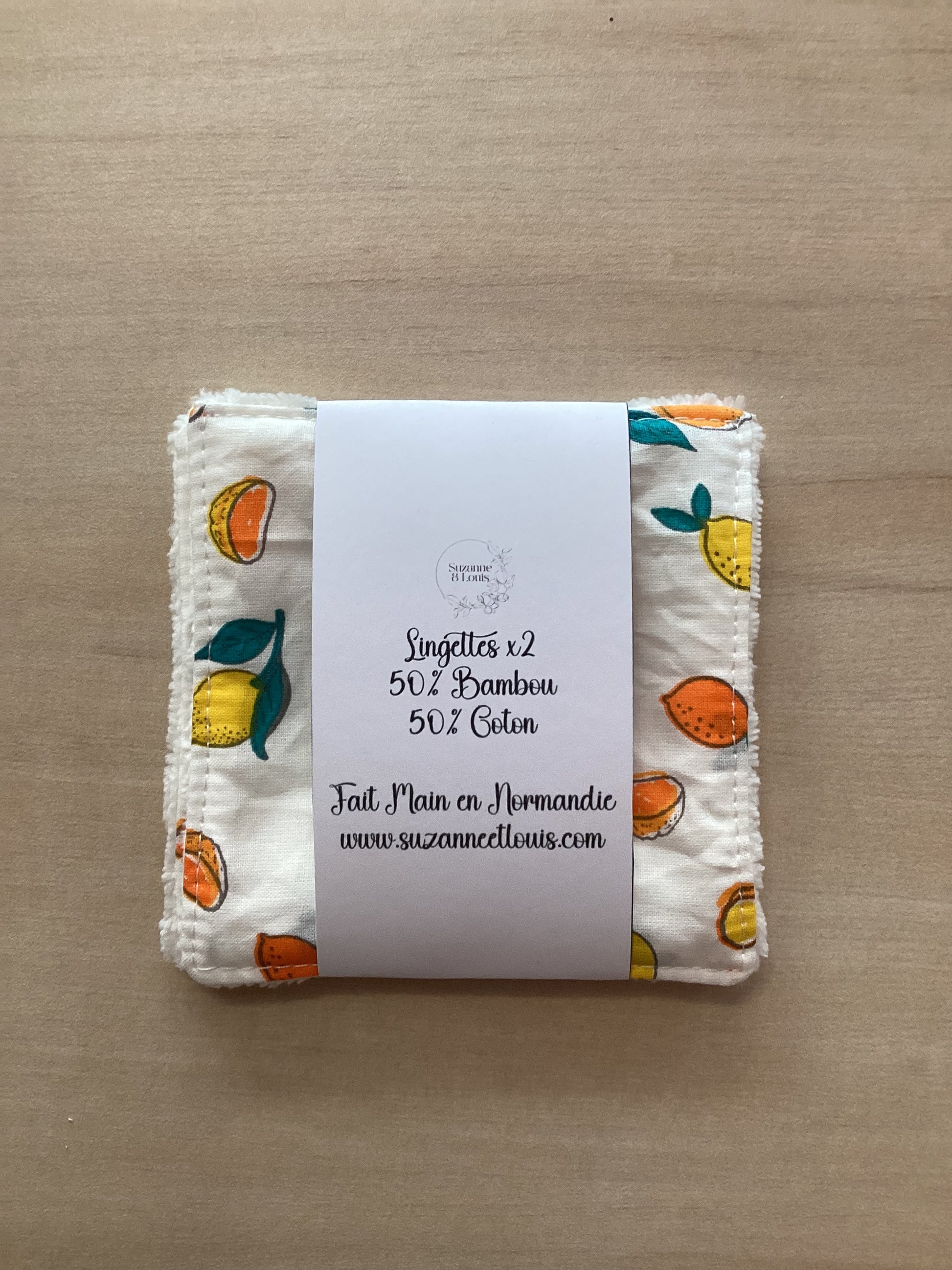 Lot de 2 Lingettes Lavables - Coton Imprimé et Bambou
